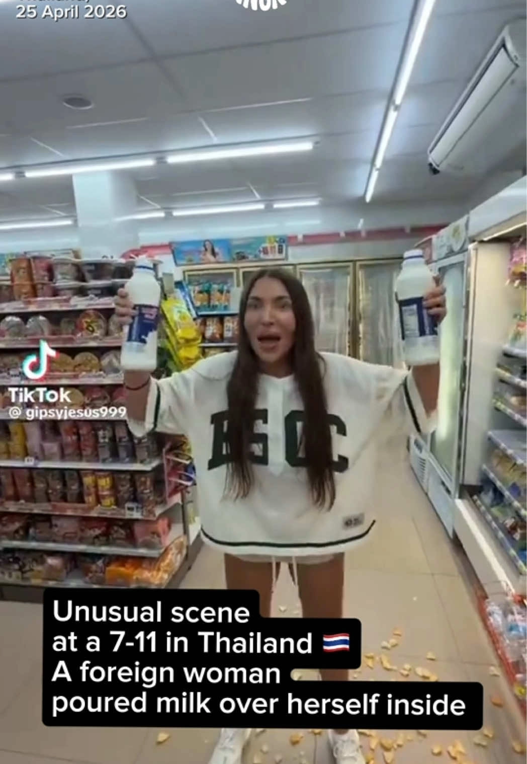 PHUKET — A Kazakhstani social media influencer has sparked widespread backlash after filming herself pouring milk over her head and scattering snacks across the floor of a 7-Eleven convenience store in Phuket, the latest in a series of incidents involving foreign content creators that has fuelled calls for a review of Thailand's visa policies.